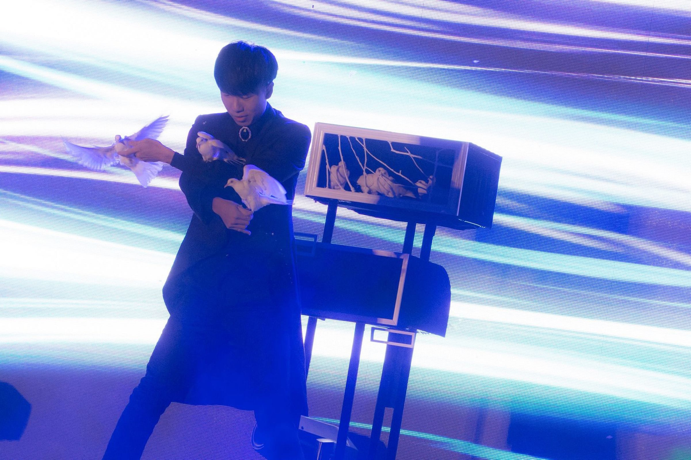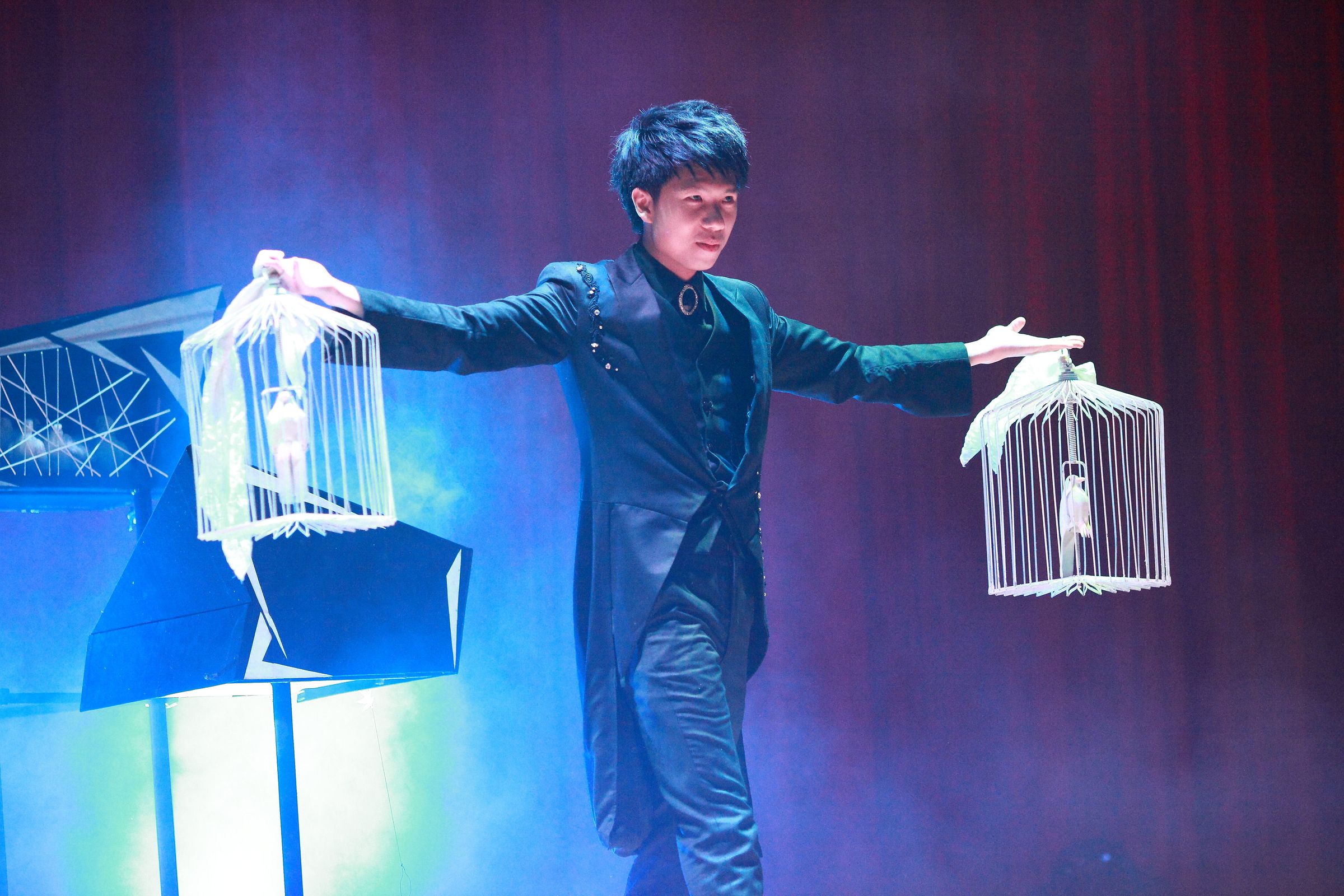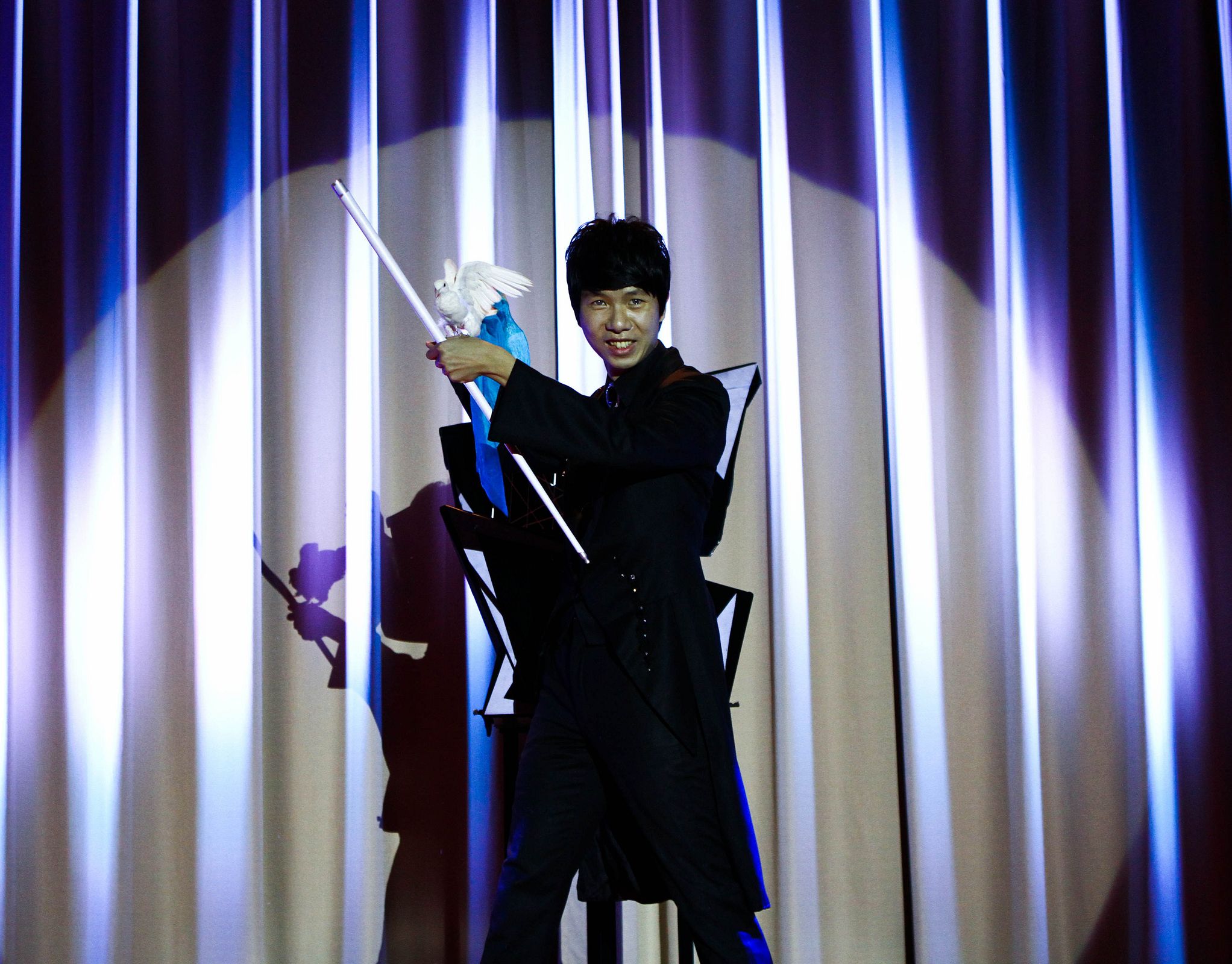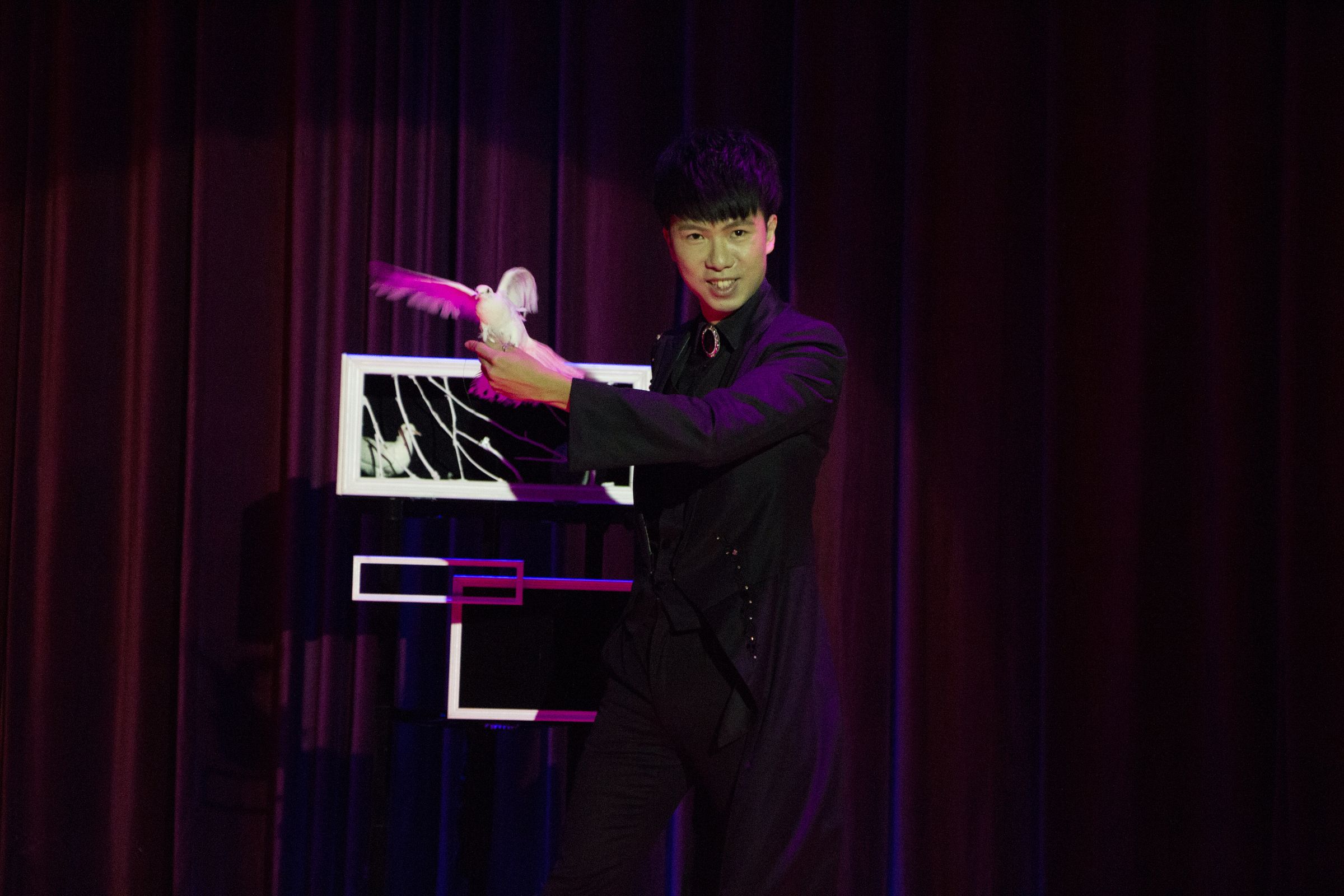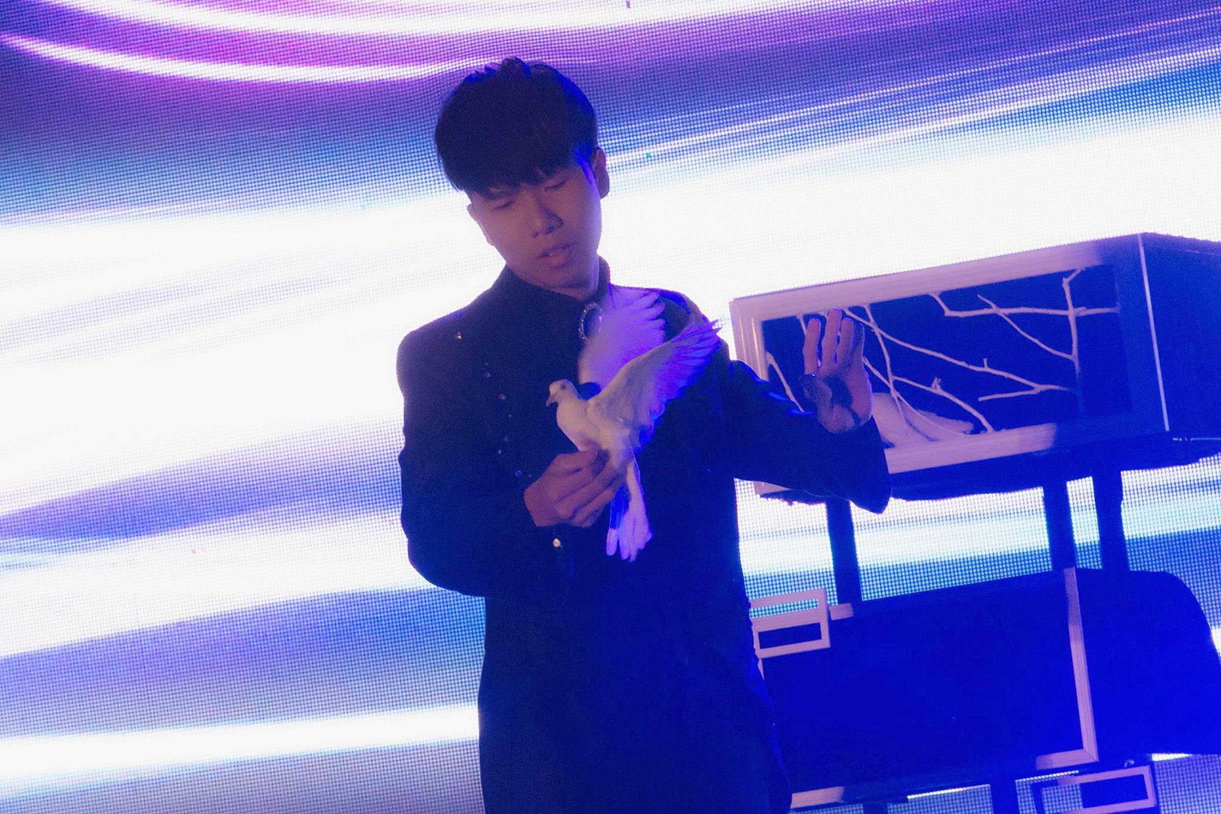 獨創的鴿子魔術結合「光」的元素, 並將「虛與實」的概念融入在表演中,全球首創瞬間三隻鴿子的魔術效果,把鴿子魔術提升至一個全新的境界。